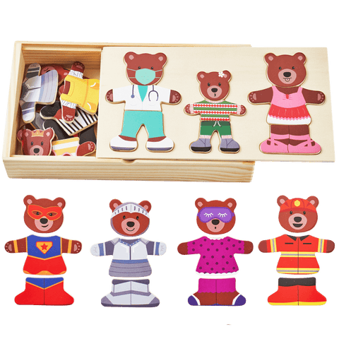 Our Threading Beads from age 3 are one of the most effective fine motor toys available and wonderfully low-tech. Our Dress Up Bears from age 3 combine fine motor challenge with creative decision-making as children mix, match, and dress their bears.