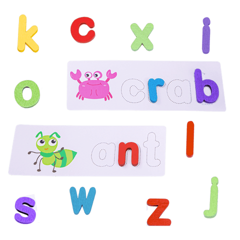 Our spelling game makes a great gift for toddlers. It comes with wooden alphabet letters and a double-sided word cards which is an easy-clean material. The spelling activity cards are made up of 3 and 4 letter words. This toy comes in a fun and bright design, with depictions of the words, to keep learning fun and engaging.