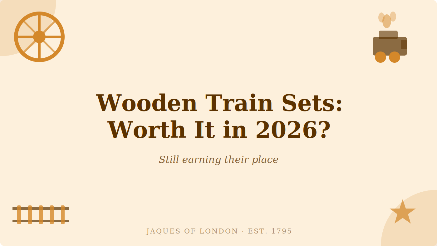 Jaques of London has been making toys that children build things with since 1795. The wooden train set is a newer addition to that history, but it earns its place by the same principle that has always guided us: make something that genuinely develops a child, and they will play with it properly. Because the best screen-free afternoon doesn't require a strategy. It just requires the right toy on the floor.