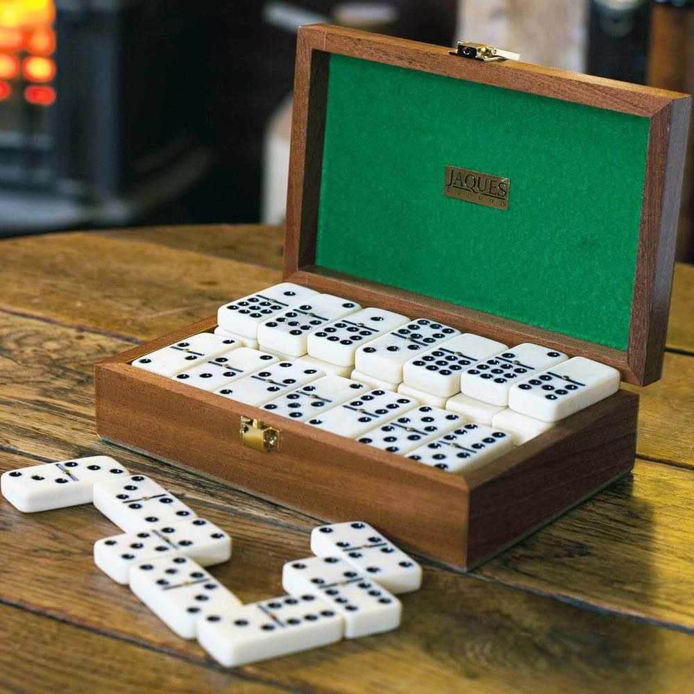 Dominoes is as at home with the sophisticated gamesman, as it is with the young at heart. The perfect blend of traditional gaming and child-like joy, Jaques of London’ domino collection is falling over itself to delight players of all ages.