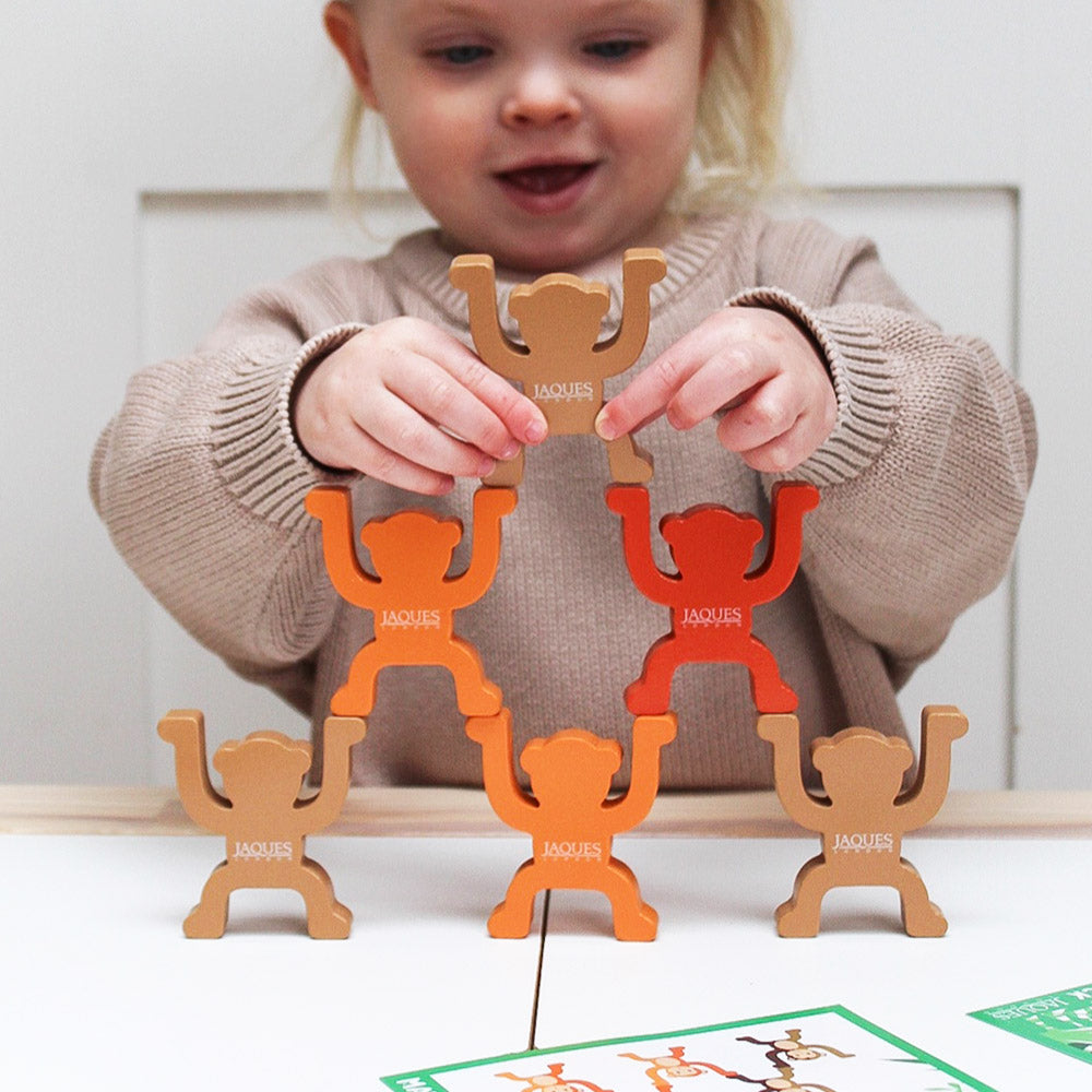 Made from sustainably sourced wood and finished with child-safe paints, these timeless toys grow with your little one—helping them build, balance, and explore through play.
