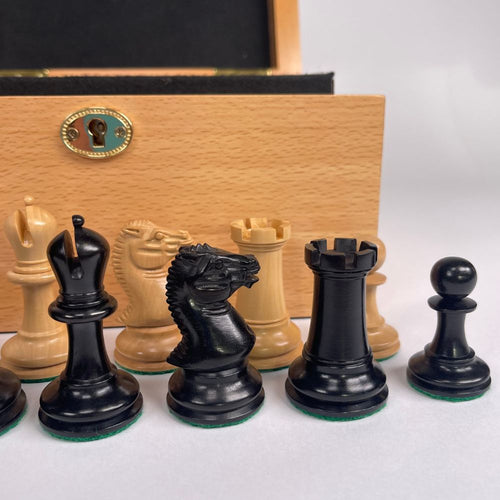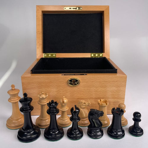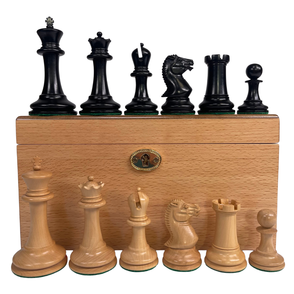A faithful reproduction of our 1854 Edition 3.5" Chess Set in a Beech presentation box - perfect for play, and a wonderful talking point. Part of a limited run, so buy now to own a piece of chess history.