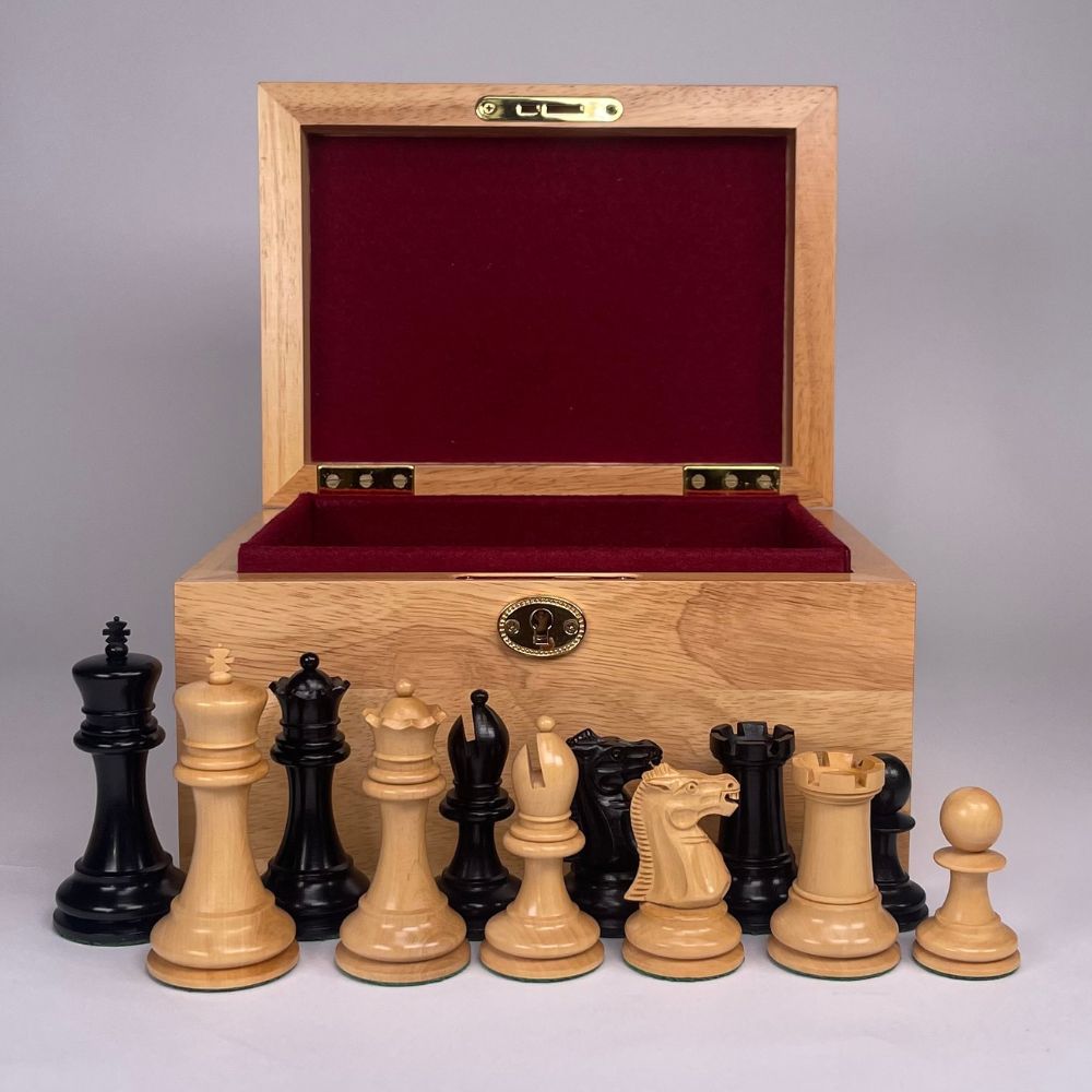 1890 Edition 3.5" Chess Pieces in Oak Box Traditional Staunton Chess Pieces