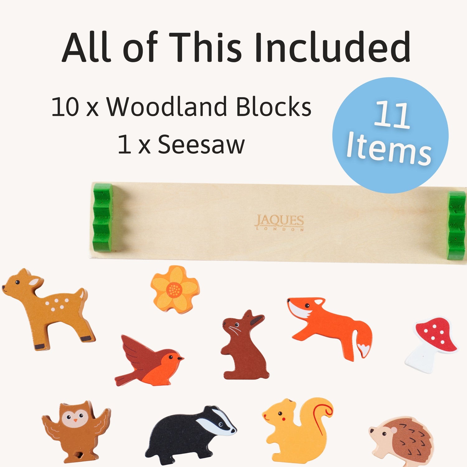 Our wonderful animal seesaw play set will include chunky wooden animals that have been specially designed for little hands. These include all the British wildlife classic animals: robin, deer, squirrel, owl, badger and fox.