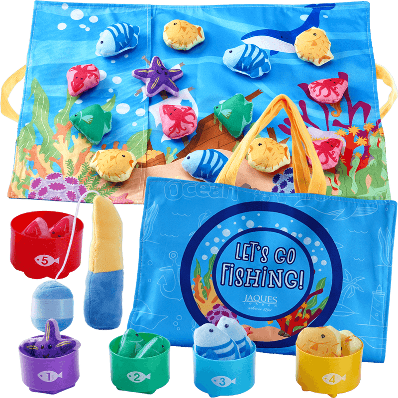 Using the plush magnetic fishing rod, little ones can catch colourful sea creatures from the ocean play mat. The pieces are soft and safe, making this an ideal first fishing game for babies. It supports early fine motor skills, hand to eye coordination and colour recognition without feeling like learning.