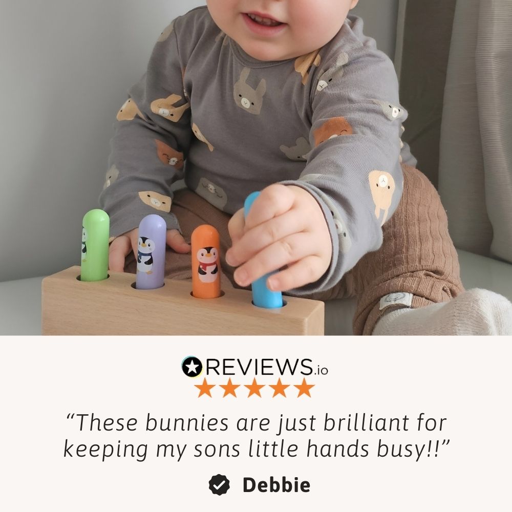 - ⭐ Supports Hand-Eye Coordination Pressing and placing the bunnies into the correct holes helps toddlers practise coordination and controlled hand movements.