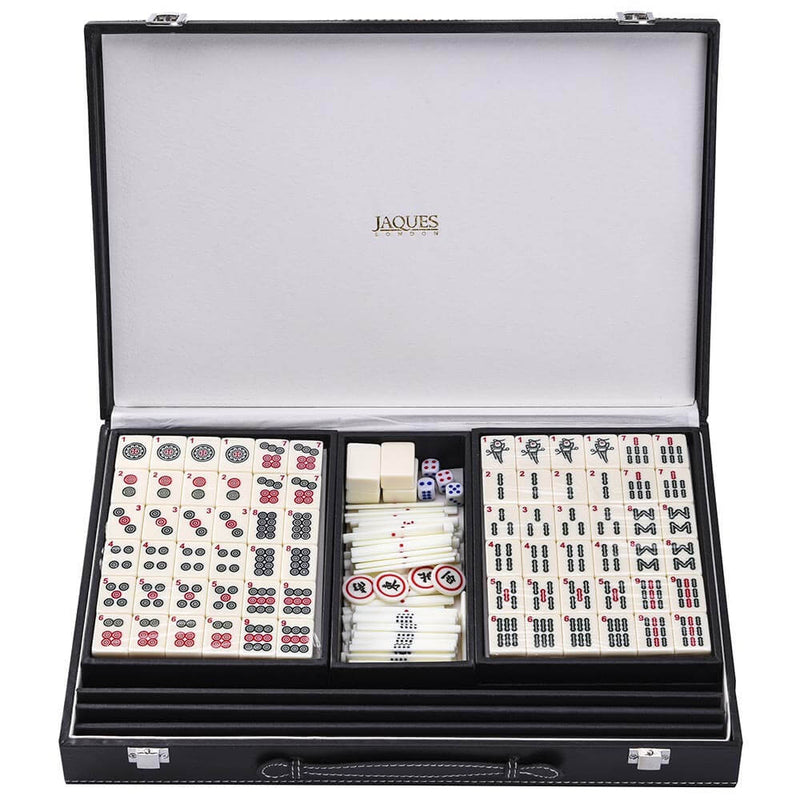 The Jaques of London Luxury Mahjong Board Game is a complete Mahjong set, with everything you need to play stored neatly in a sophisticated, handmade black cabinet case – with fully baize lined trays to keep your Mahjongg Set in perfect condition.