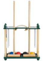 This beautifully finished set includes polished hardwood mallets that are durable and perfectly balanced for younger hands. The set also features high-quality Jaques croquet balls, designed for smooth play, and comes complete with steel hoops, a four-colour wooden winning peg, and simplified rules – all neatly presented on a wooden presentation stand.