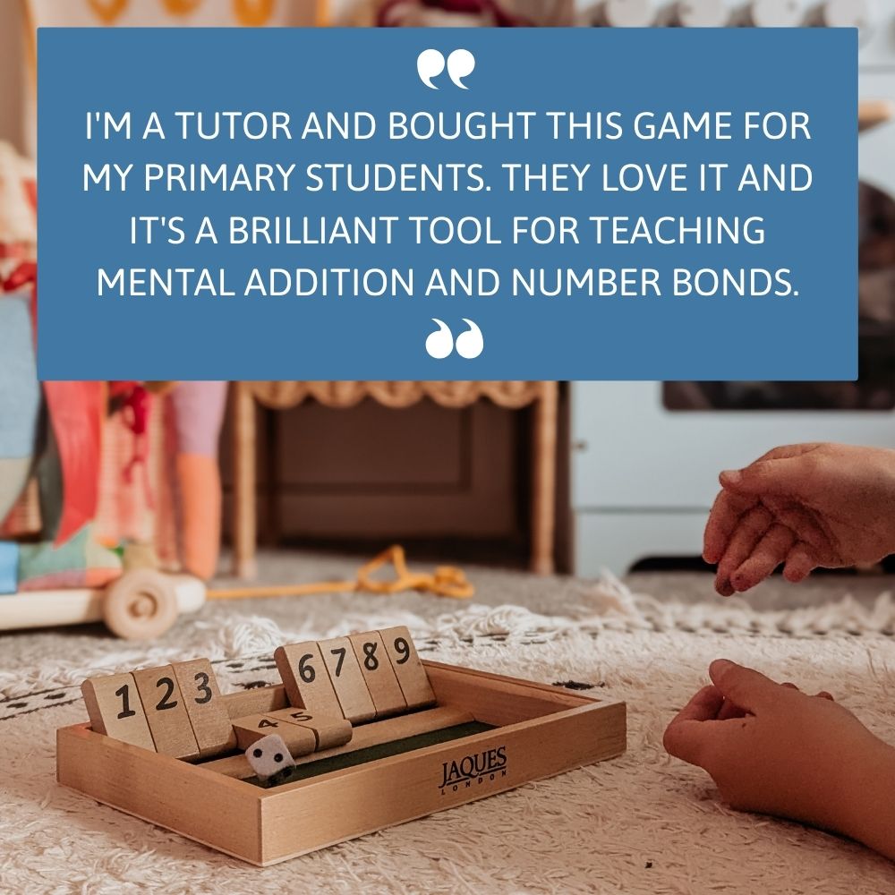Bring classic maths fun to playtime with the Jaques Deluxe Shut the Box – 9 Numbers a brilliant wooden game designed to build counting confidence, problem-solving skills, and number knowledge through play.
