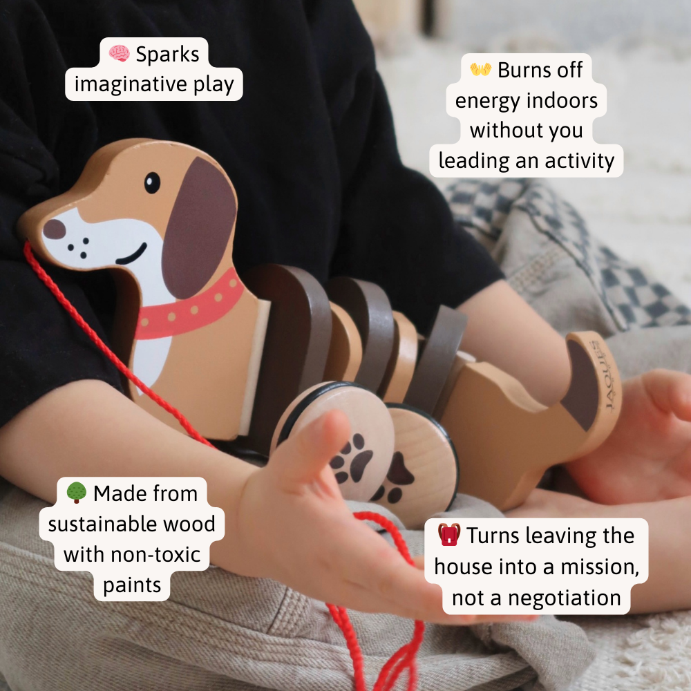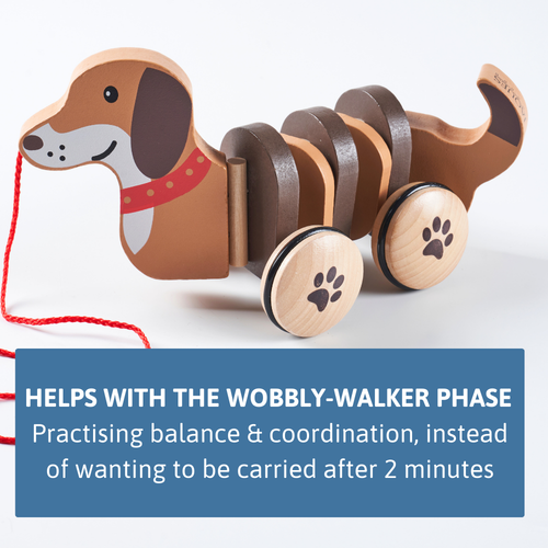 - ⭐ Wooden Pull Along Dog Dolly the Dachshund with sturdy pull-along cord
