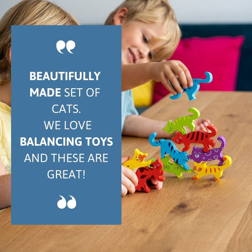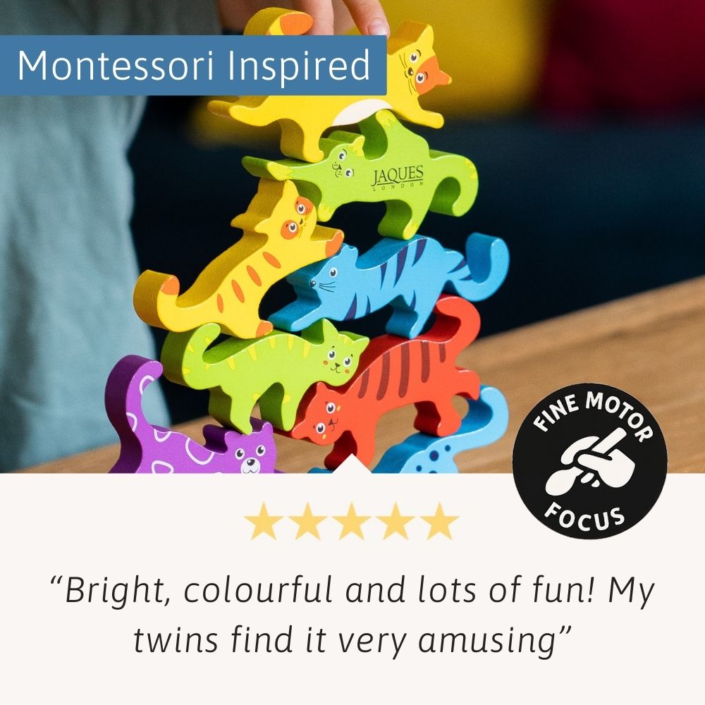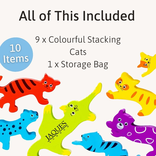 - ⭐ 9 Colourful Stacking Cats Chunky wooden cats in bright, engaging colours