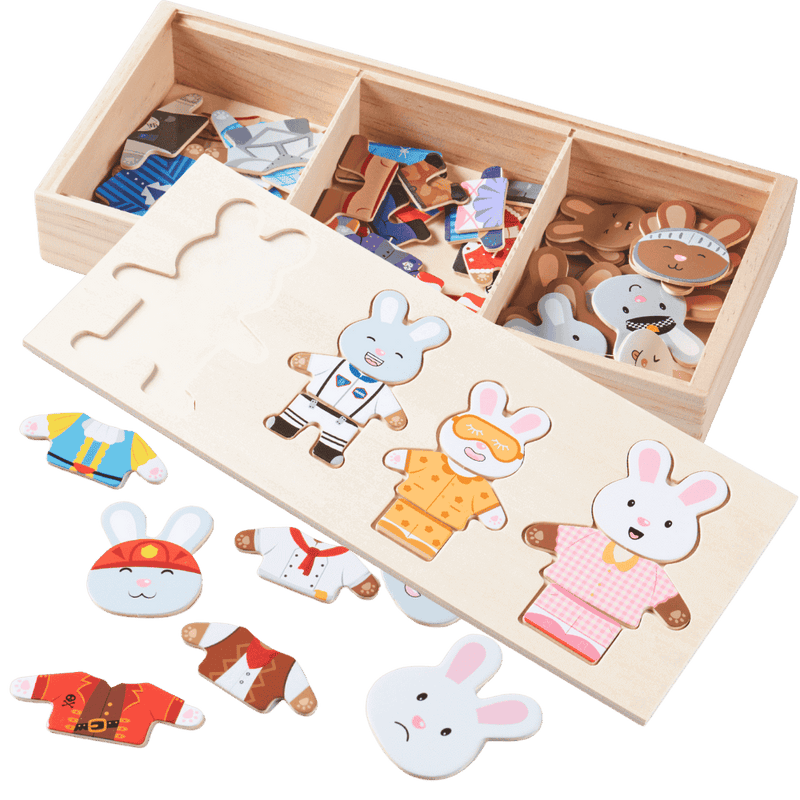 - ⭐ Wooden mix-and-match bunny puzzle pieces