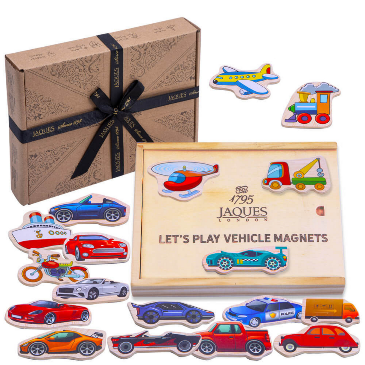 - Jaques' toy magnets include 20 x cars and vehicles in a neat wooden box.