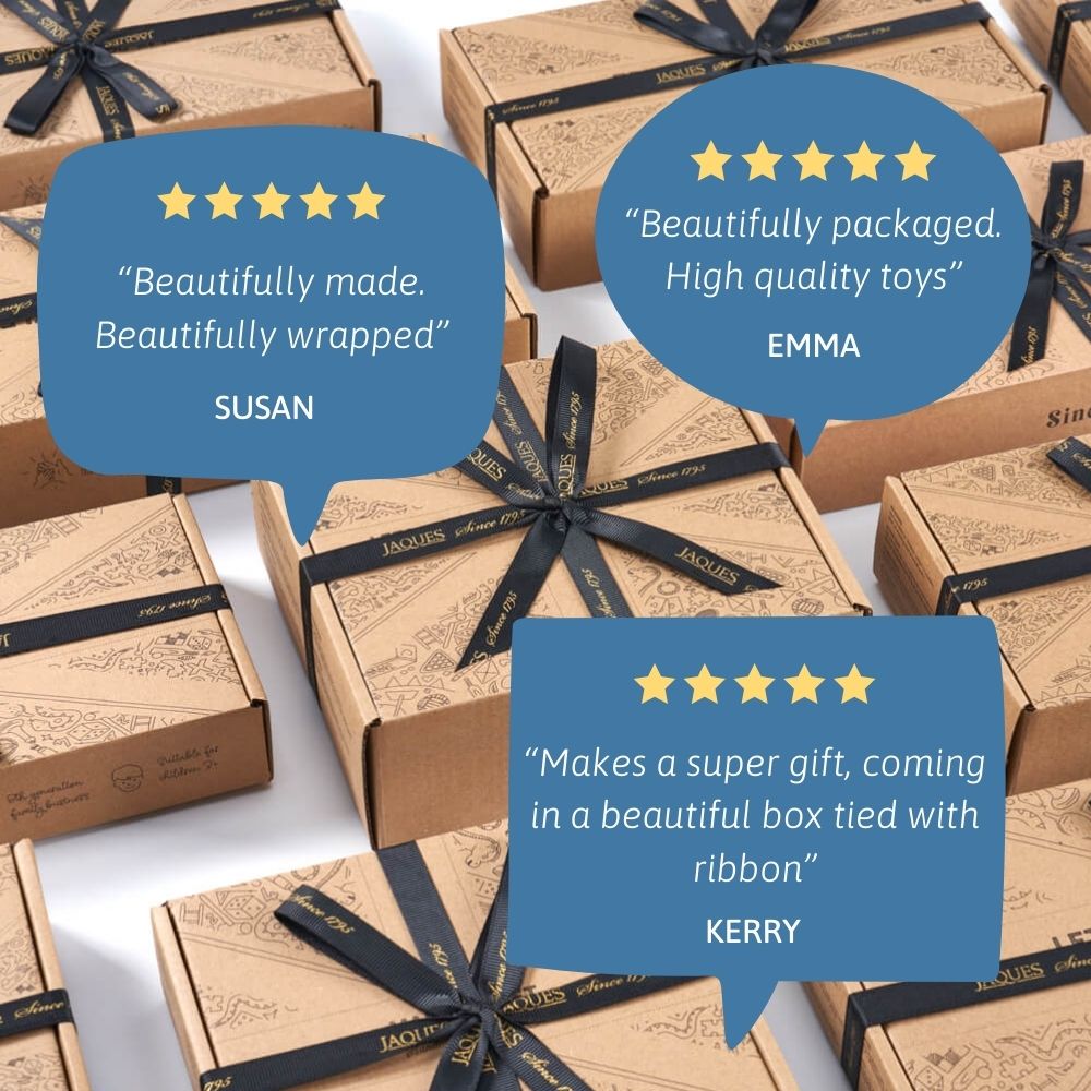 Made from smooth, sustainably sourced wood, these puzzles support fine motor skills, shape recognition, and early problem-solving in a safe and engaging way. Designed to spark curiosity and creativity, they’re ideal for on-the-go learning or quiet play at home, all presented in Jaques' signature ribbon-tied gift packaging.