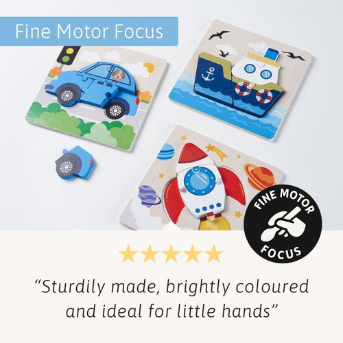 Wooden Car Jigsaw - Baby Transport Puzzle Set of 3 Wooden Puzzles (3+ Years)