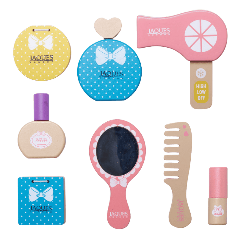 Get ready for some positive, empowering play with Jaques of London’s Let’s Pretend Make-Up Set, the perfect wooden vanity toy for kids! This beautifully designed pretend play make-up kit encourages imagination, creativity, and self-expression as little ones style, pamper, and play.