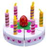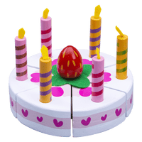 This birthday cake toy is a fantastic addition to our growing range of play food. This birthday cake play food set comes complete with a cake serving utensil. The cake features Velcro attachments and is separated into slices. The addition of Velcro makes it easy for little hands to divide the cake into slices and put it back together. Our play food cake set comes complete with candles.