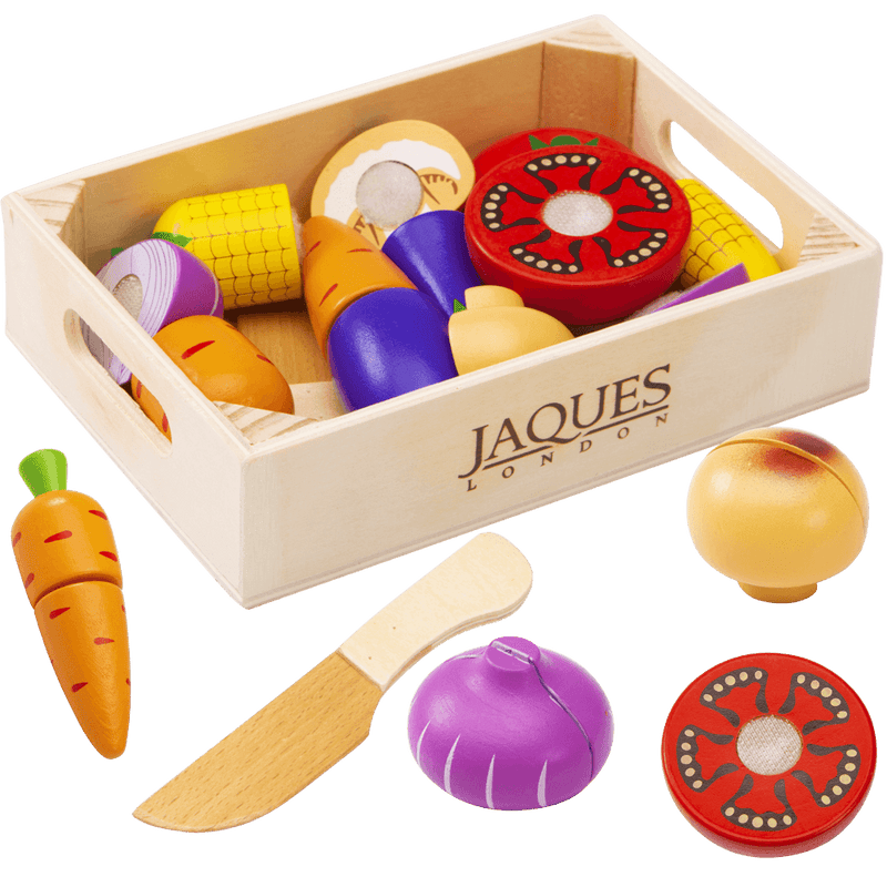 Serve up fun and learning with Jaques of London’s Wooden Play Food Set for Kids, a delicious way to inspire imagination and creativity. Perfect for pretend kitchens and Montessori role play, little chefs can slice, share, and serve a variety of colourful wooden foods while learning about healthy eating.