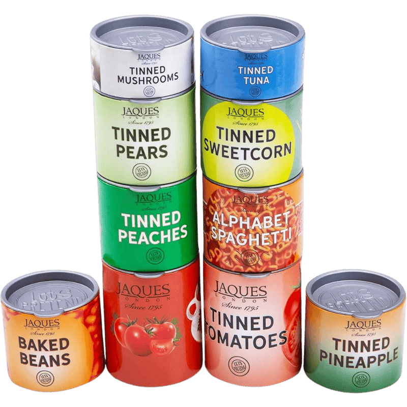- ⭐ 10 x Play Food Tins Includes a variety of pretend essentials such as sweetcorn, pears, mushrooms, and alphabet spaghetti