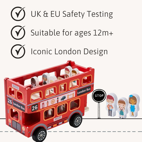 Toy London Bus - Wooden Toy Classic British Bus Toy (1+ Years)