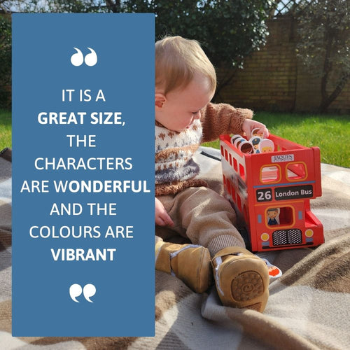 - ⭐ London Bus Smooth wooden build with bright, bold colours, realistic bus detailing, and durable, moving wheels