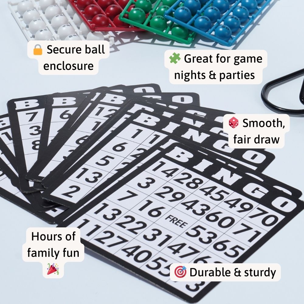 This Bingo Game Set comes complete with the bingo caller machine, cards, and the bingo balls. There are 75 bingo balls in the set.