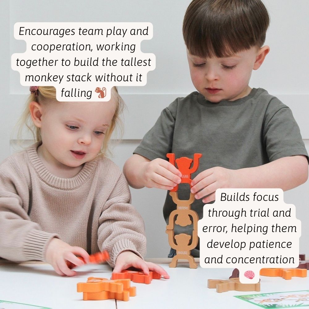 Inspired by Jaques of London’s classic Tumble Tower game, Monkey Madness offers a fresh and exciting way for kids to build, balance, and challenge themselves. Designed for little hands and big imaginations, this high-quality wooden toy ensures safe, engaging play for years to come! 🎭🐵