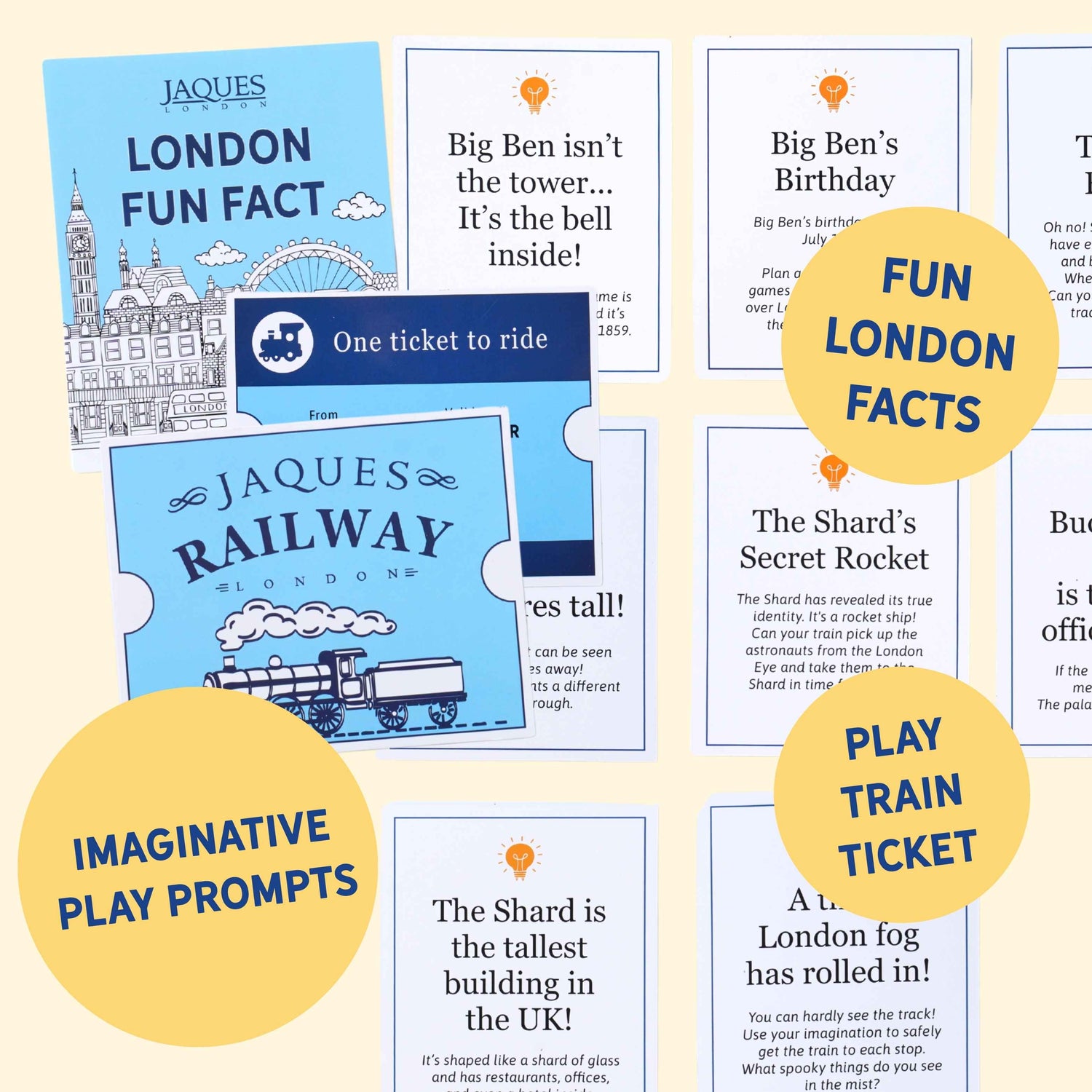 Hop aboard the Wooden Train Set Deluxe through London and let the adventures begin! Whether it's building the track, solving fun challenges, or learning exciting London facts, this train set is sure to delight any young train enthusiast.