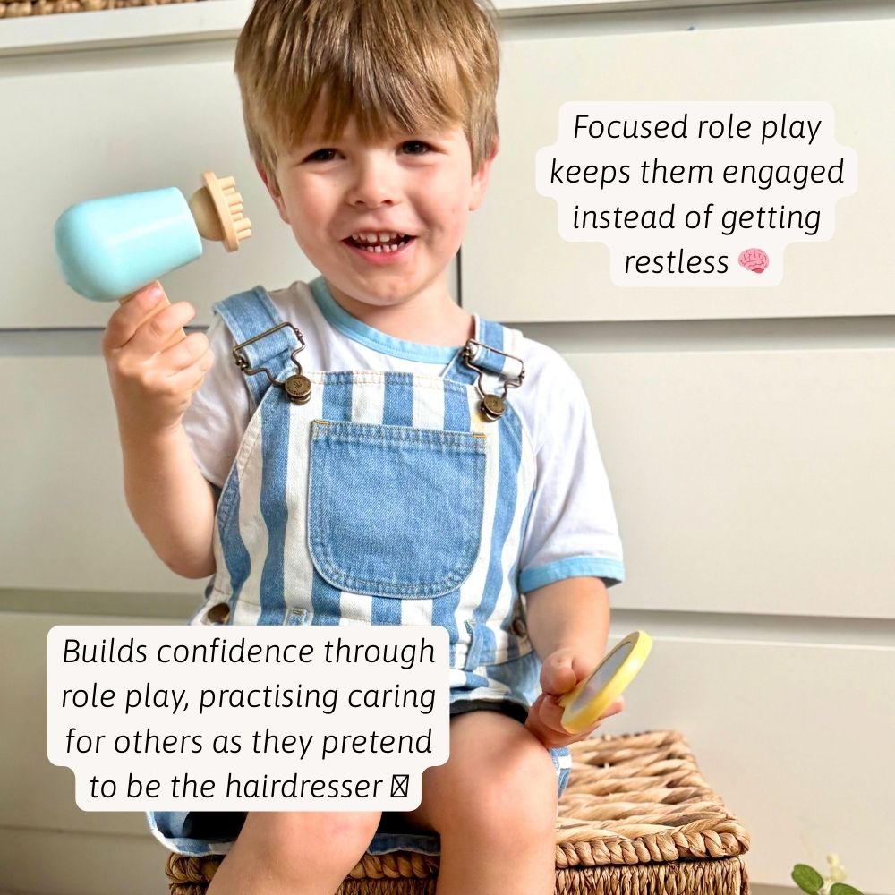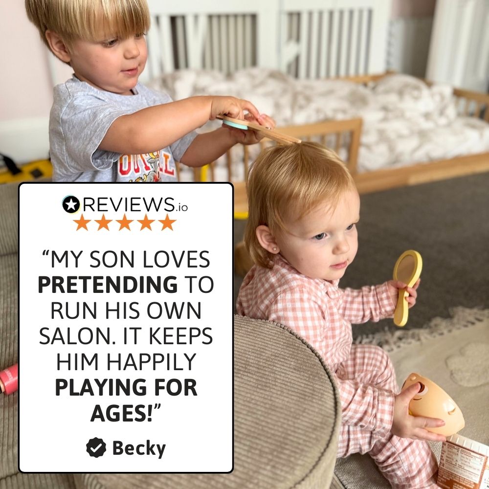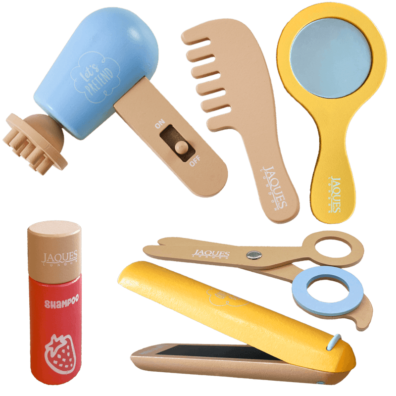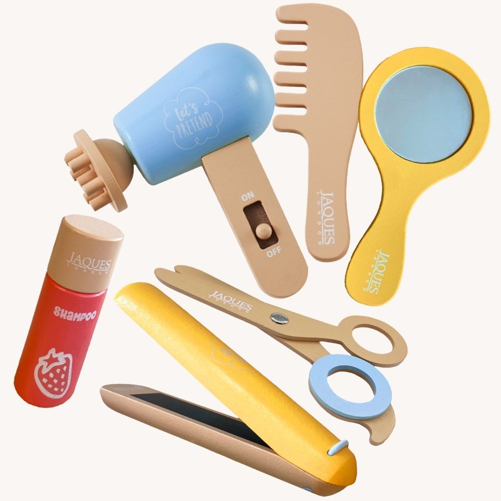 Pamper your little ones with Jaques of London’s Wooden Hairdressing Set – the perfect pretend play toy for budding stylists! From washing and cutting to blow-drying and styling, this wooden salon set encourages imaginative roleplay while teaching important self-care skills. Ideal for toddlers and preschoolers, it’s a fun and educational toy that supports early development through hands-on play.