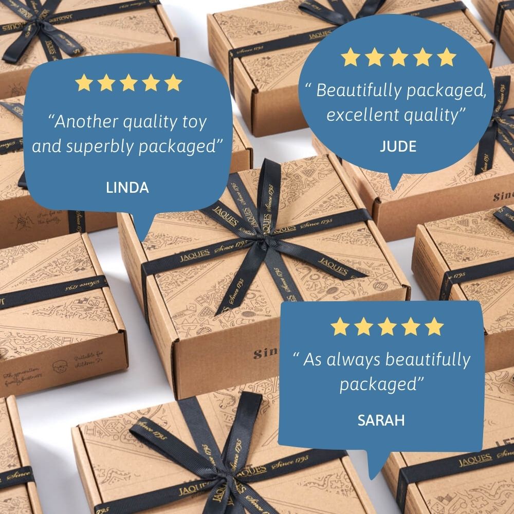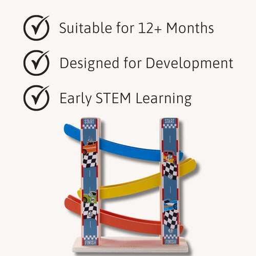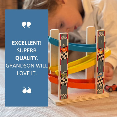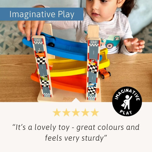 The Jaques Racing Car Park is a safe, durable toy that will keep your little one racing towards learning and development. It's the perfect gift for toddlers who love action and adventure! Beautifully gift-wrapped in signature Jaques ribbon, it’s the ideal present for any future racing star!