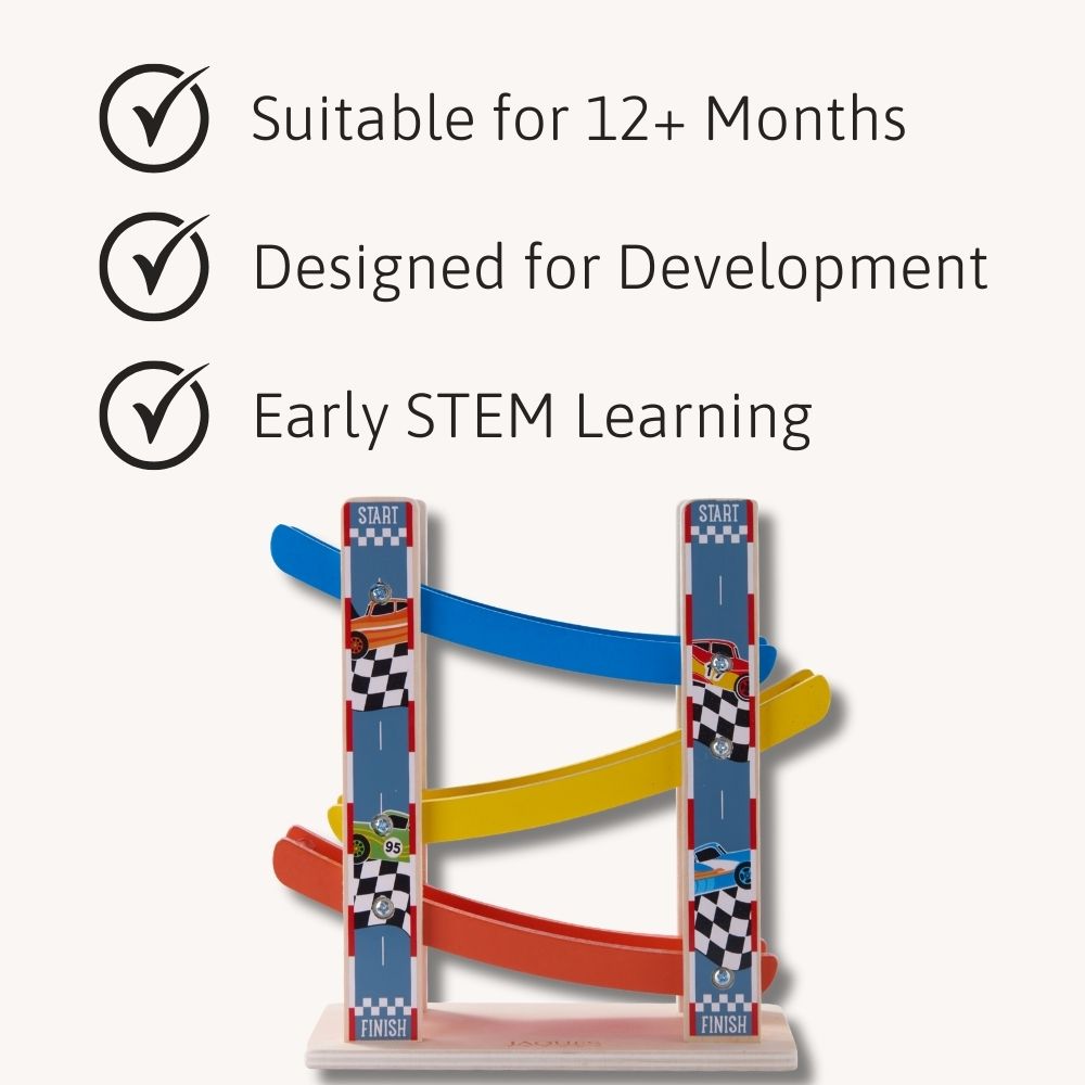 - ⭐ Wooden Racing Cars 3 brightly coloured cars for racing fun