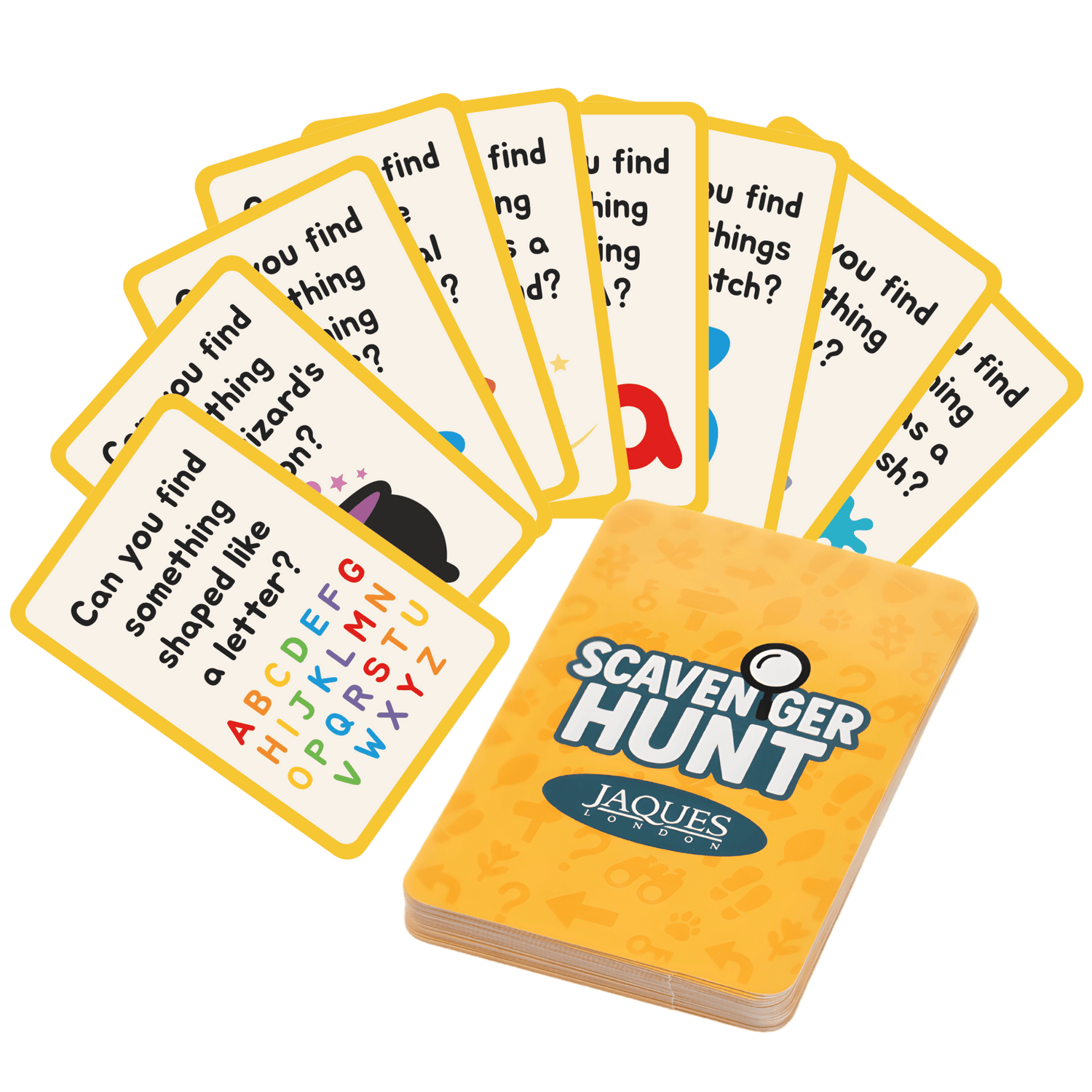 Ready, set, search! The Scavenger Hunt Game is a fast-paced scavenger hunt game for kids that turns everyday surroundings into an exciting adventure. Using fun, clue-filled cards, children race to spot, match and discover items around them, sparking laughter, curiosity and teamwork along the way.