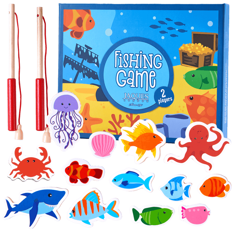 Reel in the fun with Jaques of London’s Magnetic Fishing Game for Kids! This beautifully crafted wooden fishing toy comes with two magnetic rods and a variety of colourful sea creatures, all stored in a vibrant sea life-themed box. Perfect for ages 3+, this fishing game for toddlers encourages fine motor skills, coordination, and imaginative play.