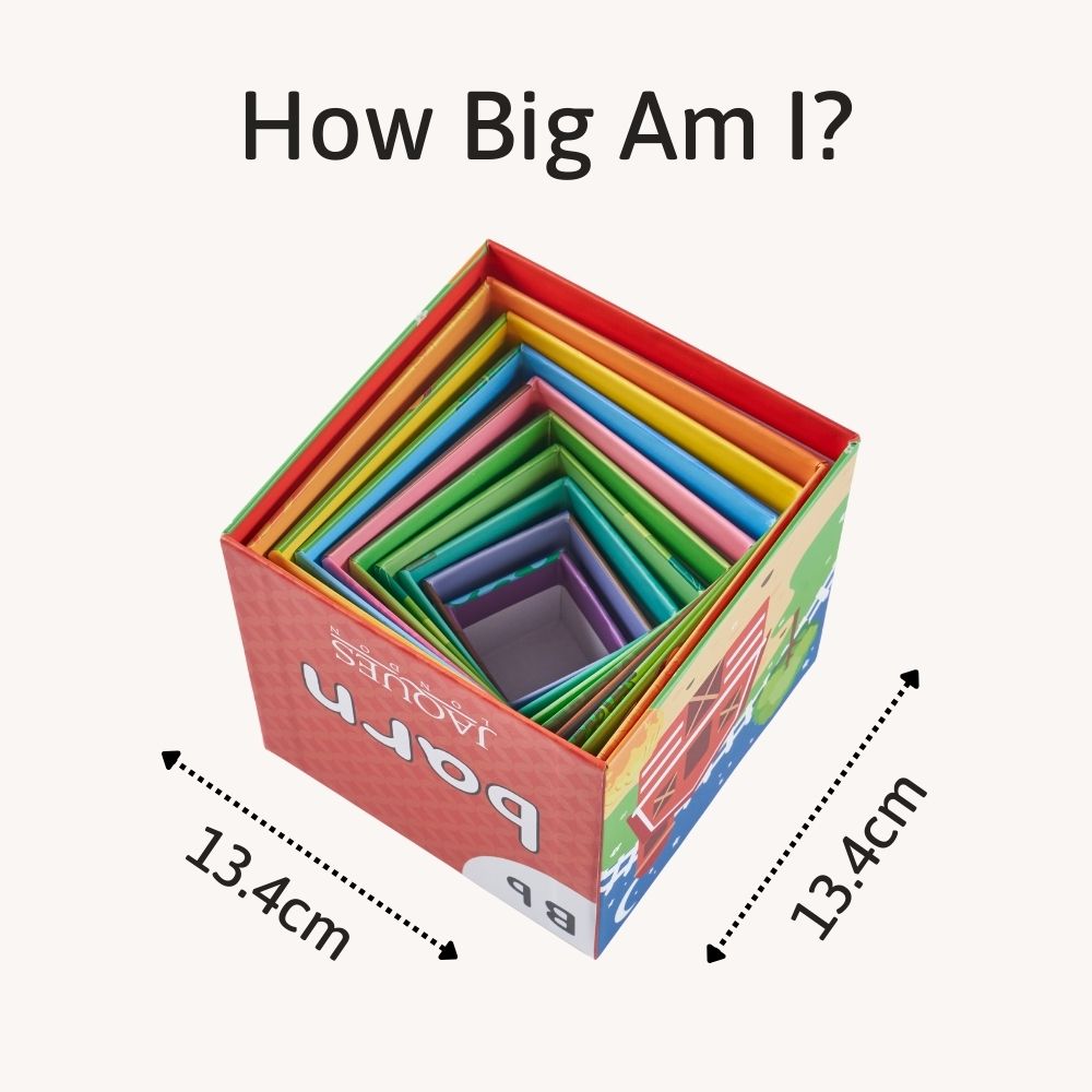 Stack, nest, and moo-ve through the farm with Jaques of London’s Farmyard Nesting & Stacking Cubes! This colourful cube set builds sky-high fun while introducing little learners to friendly farm animals, early numbers, and simple words. Designed for tiny hands, each cube encourages hands-on discovery through stacking, sorting, and nesting play. A joyful blend of learning and laughter, this Montessori-inspired toy supports early development while keeping playtime bright, engaging, and full of farmyard charm.