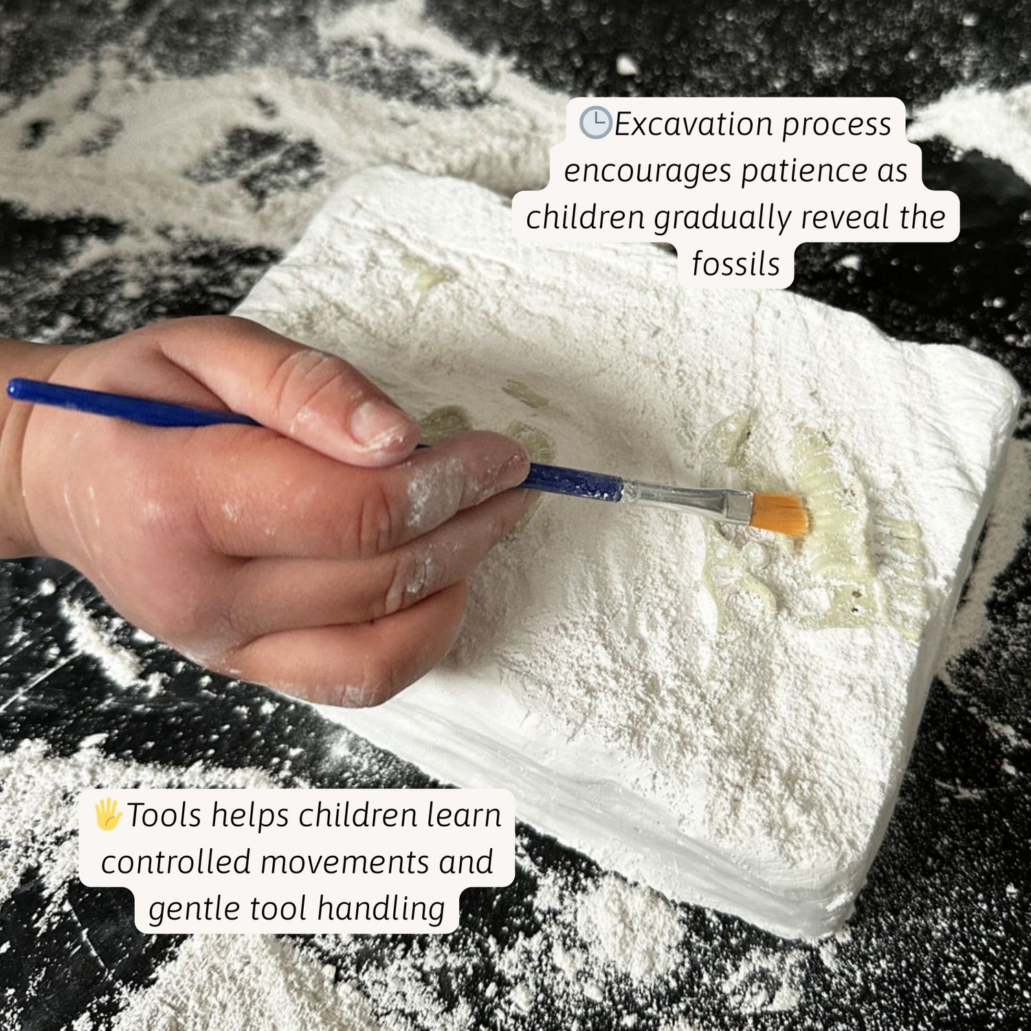 - ⭐ Child-Friendly Dig Tools Includes chisel and paintbrush for safe excavation