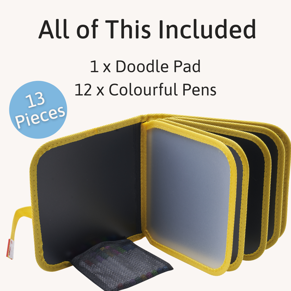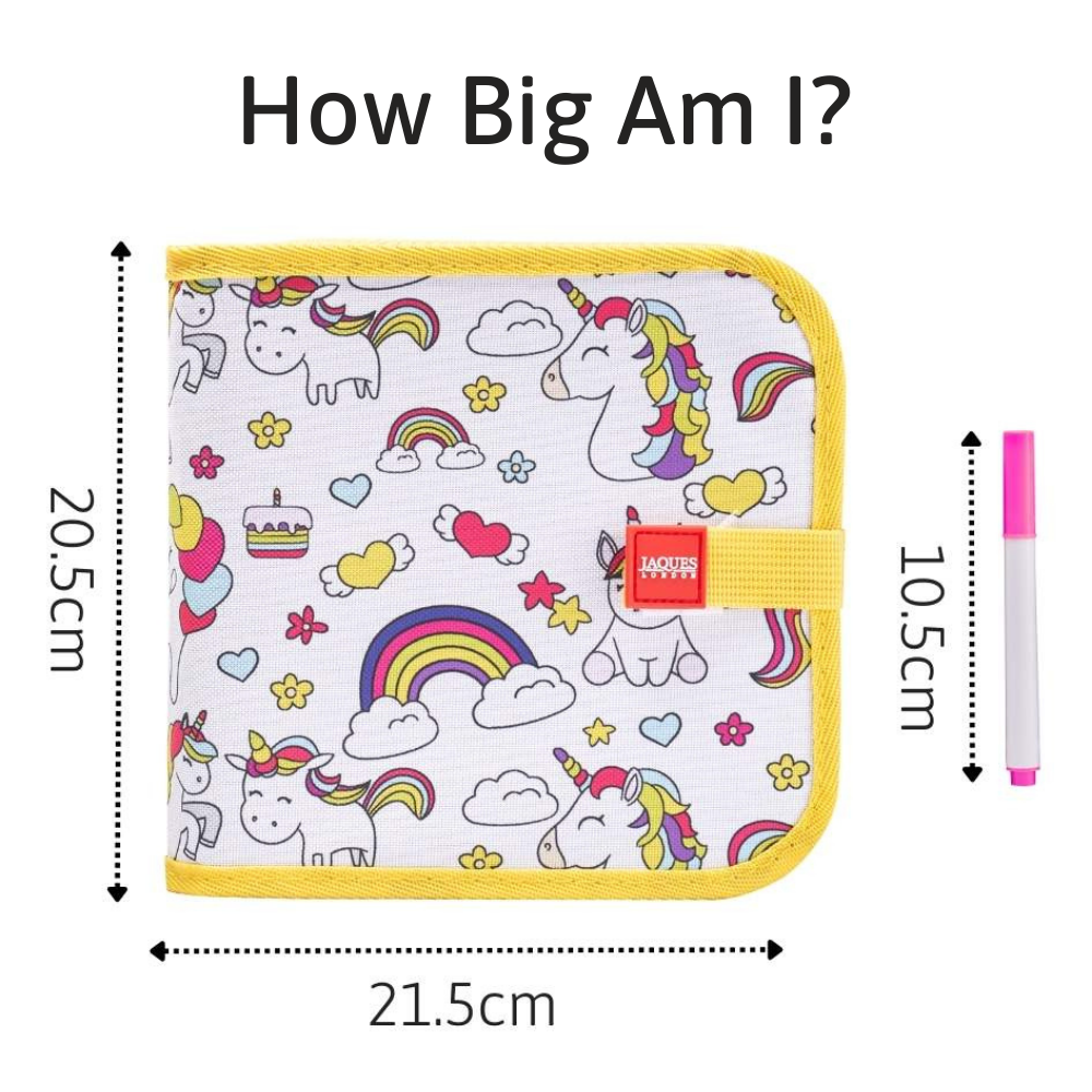 Unleash a world of creativity with Jaques' Unicorn Doodle Pad, the ultimate reusable sketchbook for kids who love to dream, draw, and explore! This mess-free unicorn drawing pad features wipeable pages, vibrant coloured pens, and a built-in storage pouch, making it perfect for home, travel, and on-the-go fun. Ideal for developing fine motor skills, boosting imagination, and providing endless screen-free entertainment, it’s the perfect creative toy for 3 year olds and beyond.