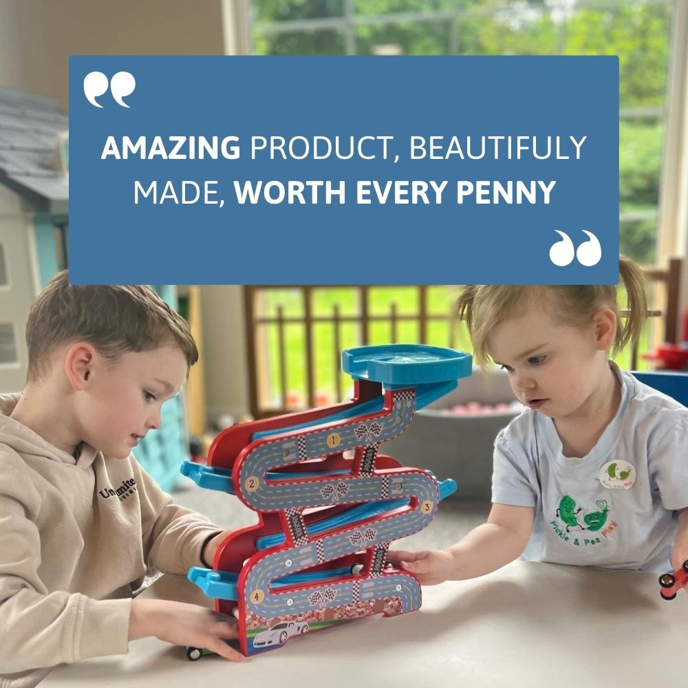 - ⭐ Multi-Storey Wooden Car Park With winding ramps for action-packed fun
