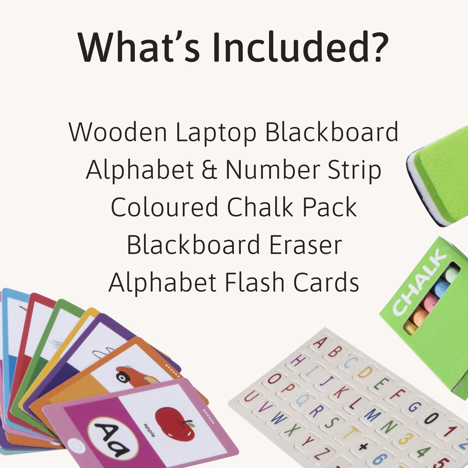 Wooden Laptop - Magnetic Toy Includes Chalks & Alphabet Cards (3+ Years)
