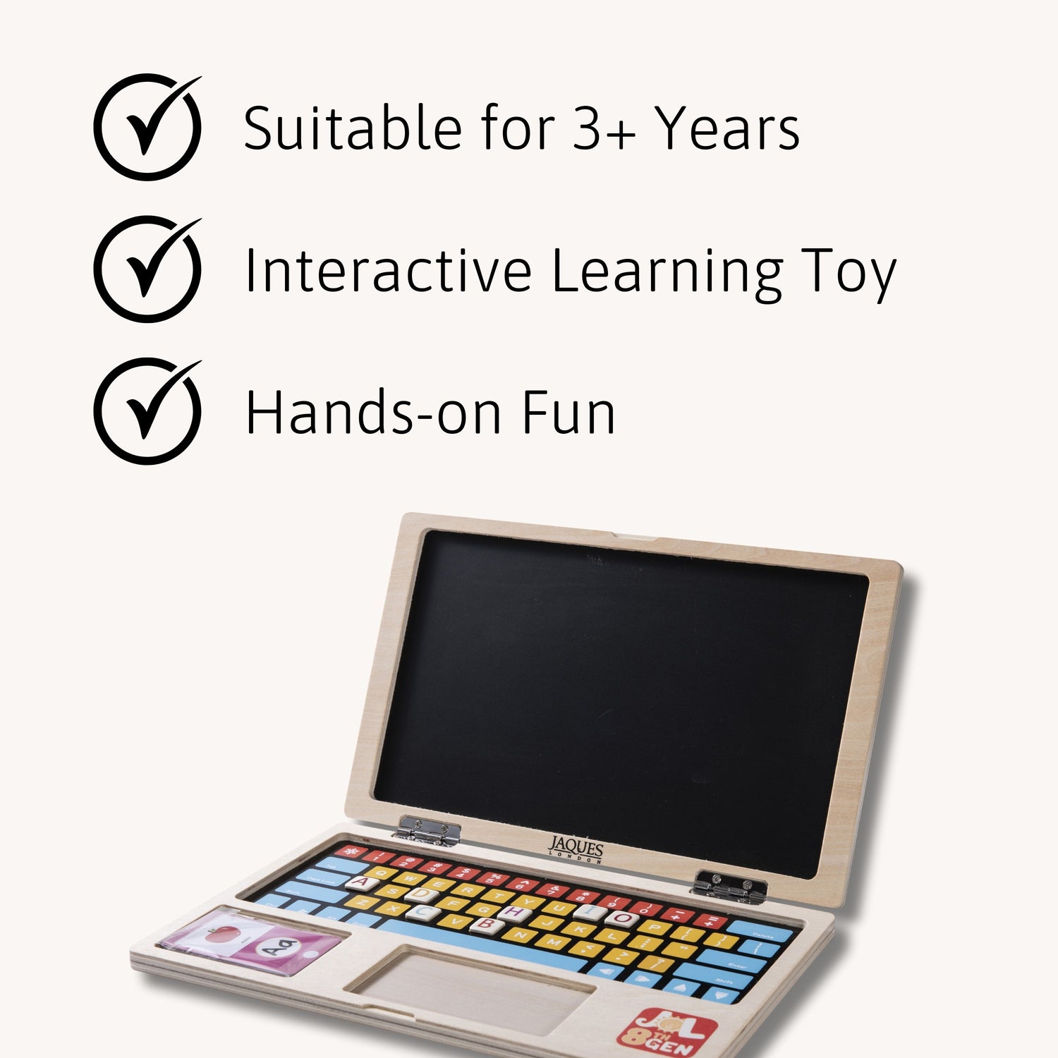 Lift the lid on screen-free learning fun with our Wooden Laptop Toy, the ultimate educational toy for 3 year olds. This magnetic drawing board combines classic wooden toy design with modern learning opportunities, making it the perfect preschool learning aid.