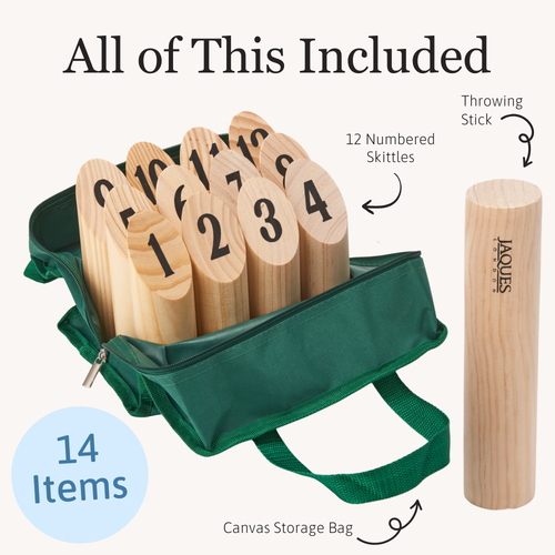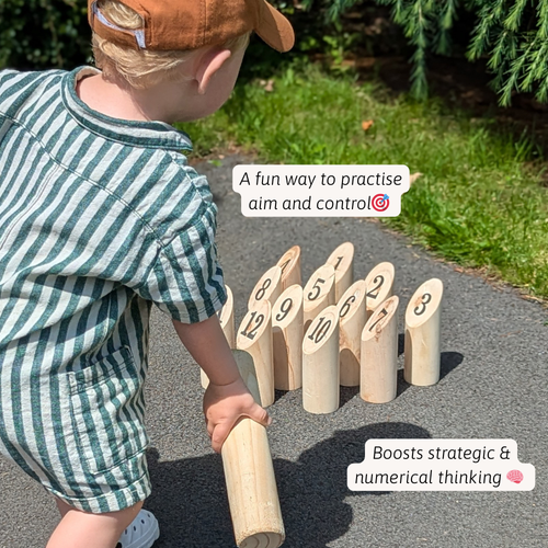 Made from high-quality, sustainable New Zealand pine, this family garden game includes 12 numbered skittles and a sturdy throwing stick, all neatly packed in a durable canvas bag. Whether you're looking for traditional outdoor toys, kids’ garden games, or the perfect summer toy for kids, this wooden skittles set delivers laughter, learning, and long-lasting memories.