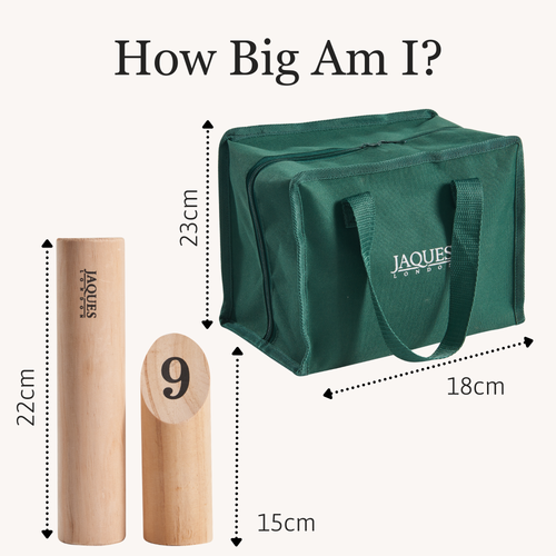 - ⭐ Size Skittles - 15cm (H) x 5cm (D); Throwing Skittle – 22cm (H) x 5cm (D)