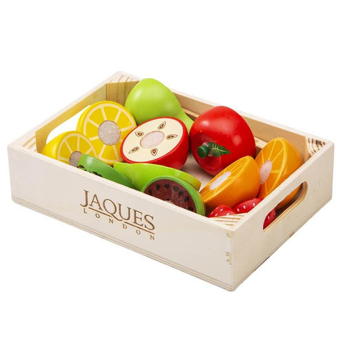 Screen Free Fun – Montessori Toys are a great way to teach a little digital resilience in children by encouraging Real Play. Wooden Cutting Food can be mixed and matched with other Play foods from the Jaques Range. Montessori toys for 3 year olds are perfect for Free play and teach little learners how to identify with the adult world around them while also encouraging healthy eating habits with wooden toy foods.