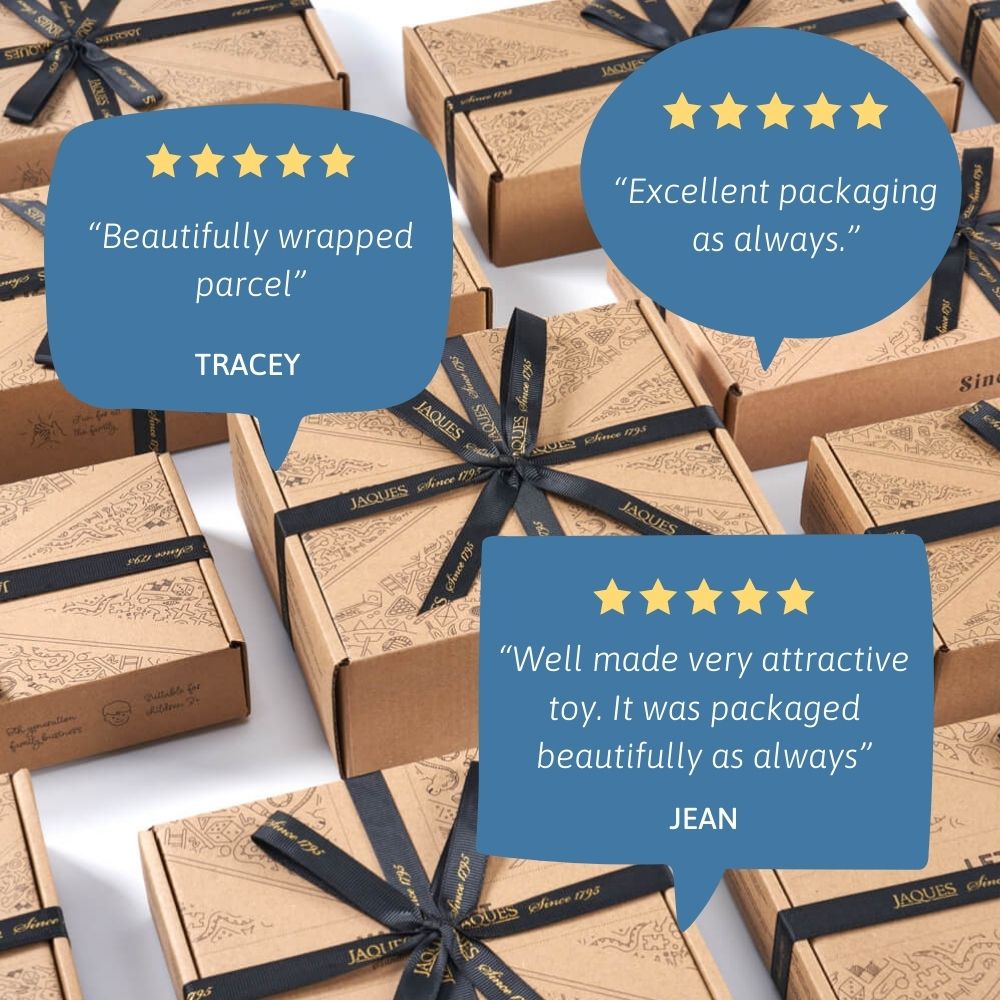 - β Signature Jaques of London gift wrap with hand-tied ribbon