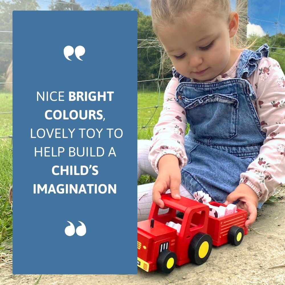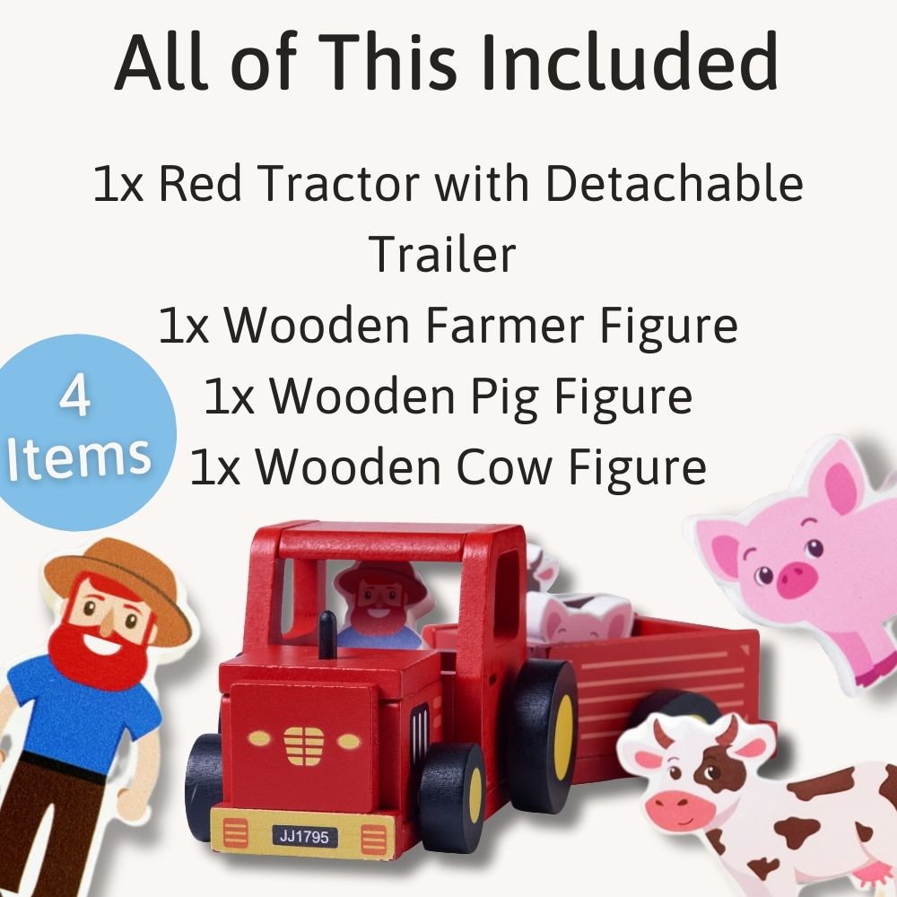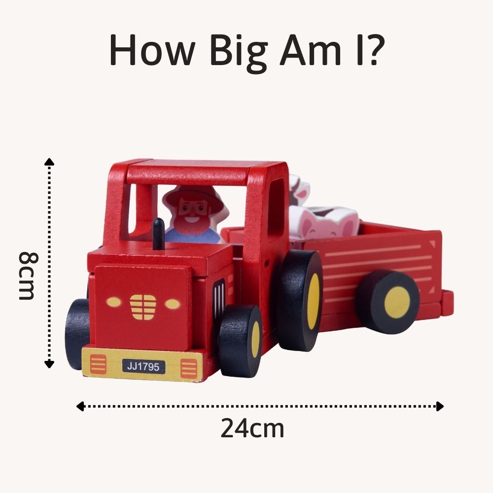 - β 1x moveable red tractor with detachable trailer (8cm x 24cm)